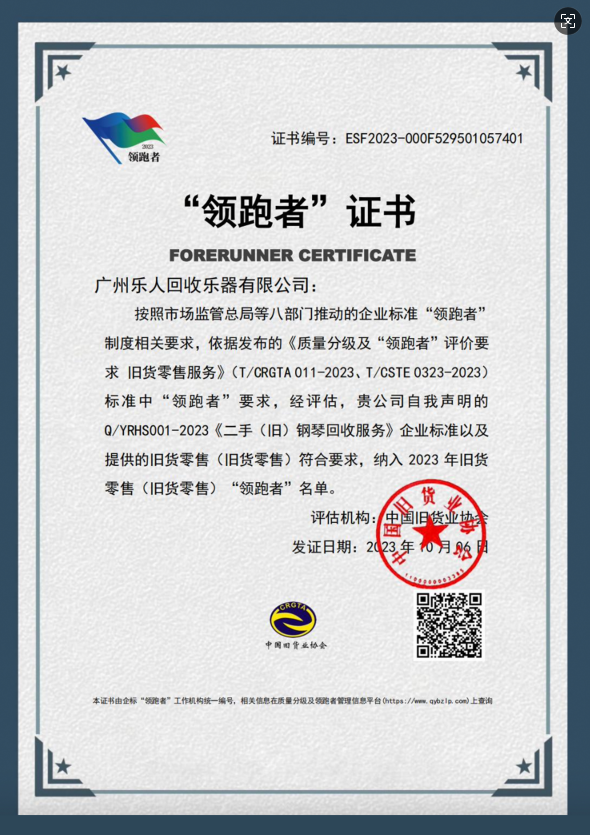 2025年1月,由中国旧货业协会发布的《二手钢琴流通技术要求》团体标准正式实施,标志着我国二手乐器流通领域首次建立起统一的技术规范。在这一里程碑事件中,广州乐人回收乐器有限公司作为核心起草单位之一,与高校、行业协会共同推动了标准的制定与落地。这一身份不仅彰显了乐人的行业地位,更意味着中国二手钢琴市场正从无序竞争迈向标准化发展的新阶段。